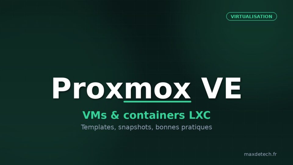 Guide débutant pour créer VMs et containers LXC sur Proxmox VE. ZFS, templates réutilisables, snapshots, bonnes pratiques dès l’install.
