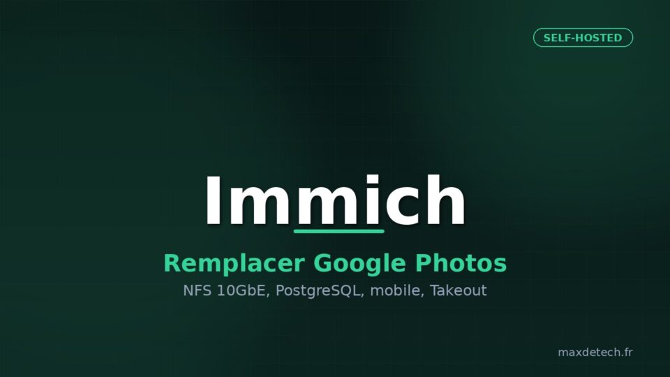 Installer Immich en Docker sur Proxmox : héberger ses photos localement. Migration Google Photos, app mobile, reconnaissance faciale, backup.