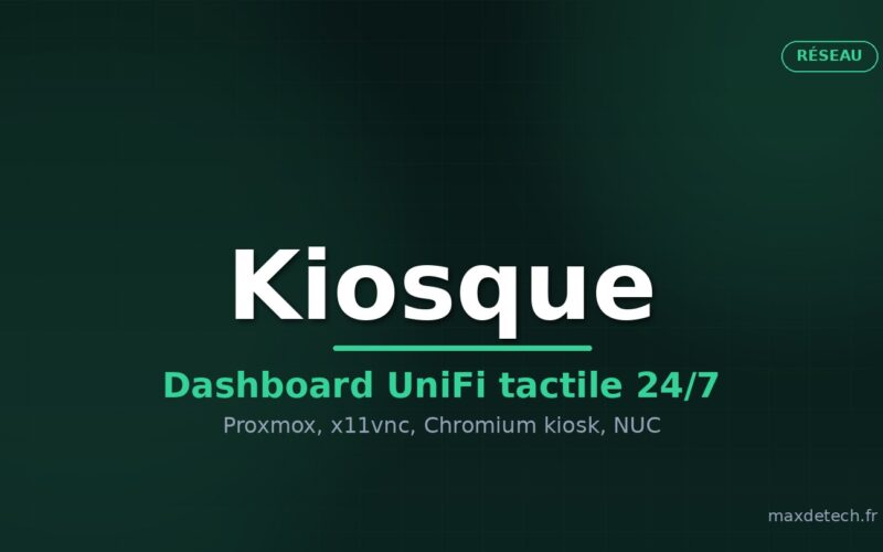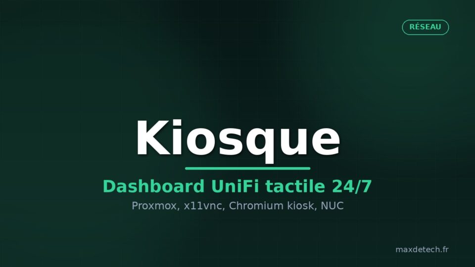 Retour d’expérience : transformer un Intel NUC en kiosque tactile UniFi 24/7 sous Proxmox. iGPU passthrough, VBT, USB-C tactile et pilotage DPMS via Home Assistant.